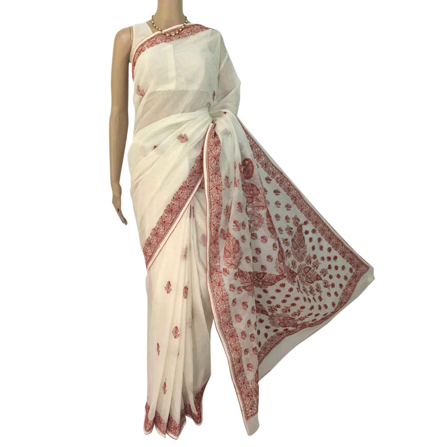 5) R’zu women’s onion pink pure cottonlucknowichikankari saree