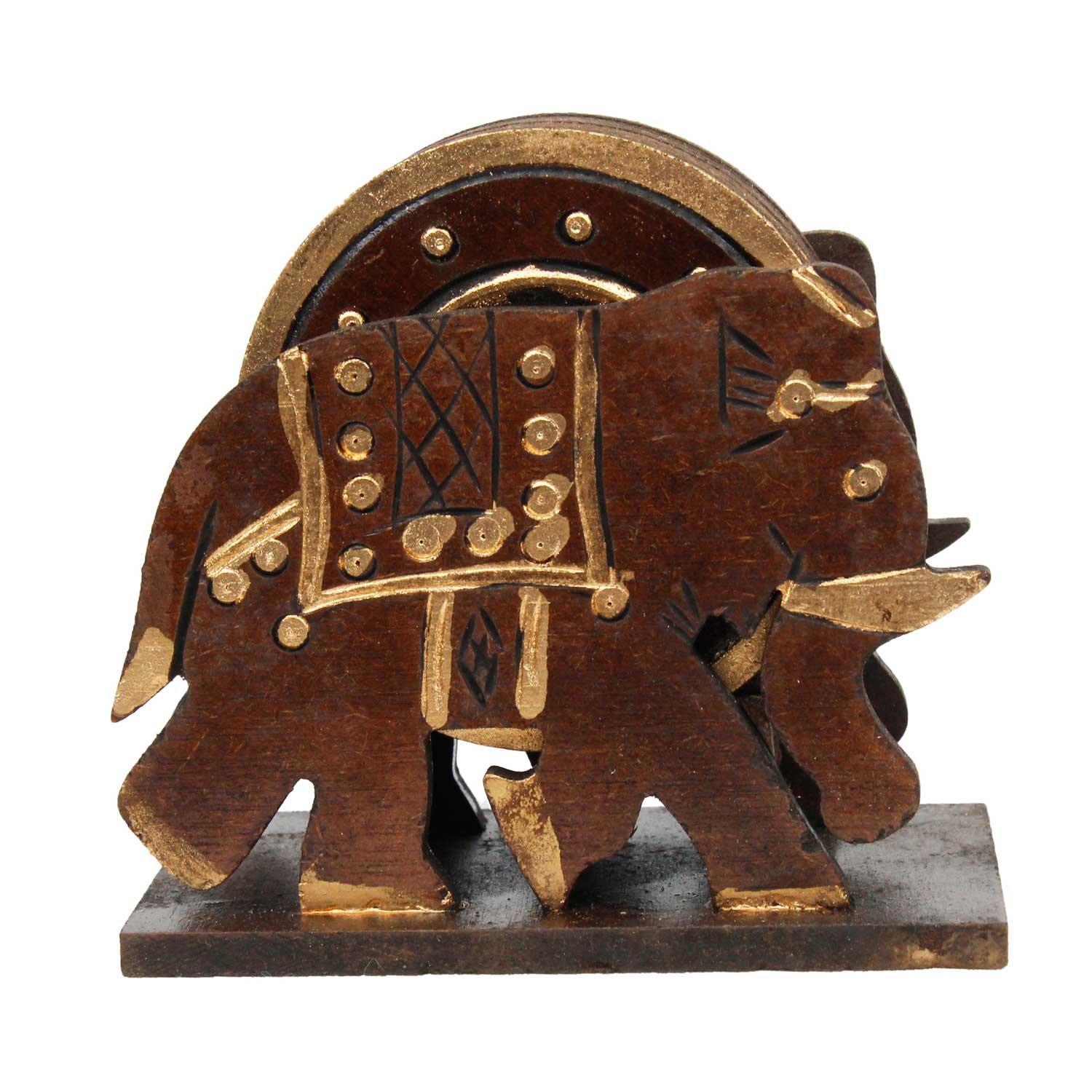2) Greentouch crafts elephant design wooden tea coaster handicraft (brown)