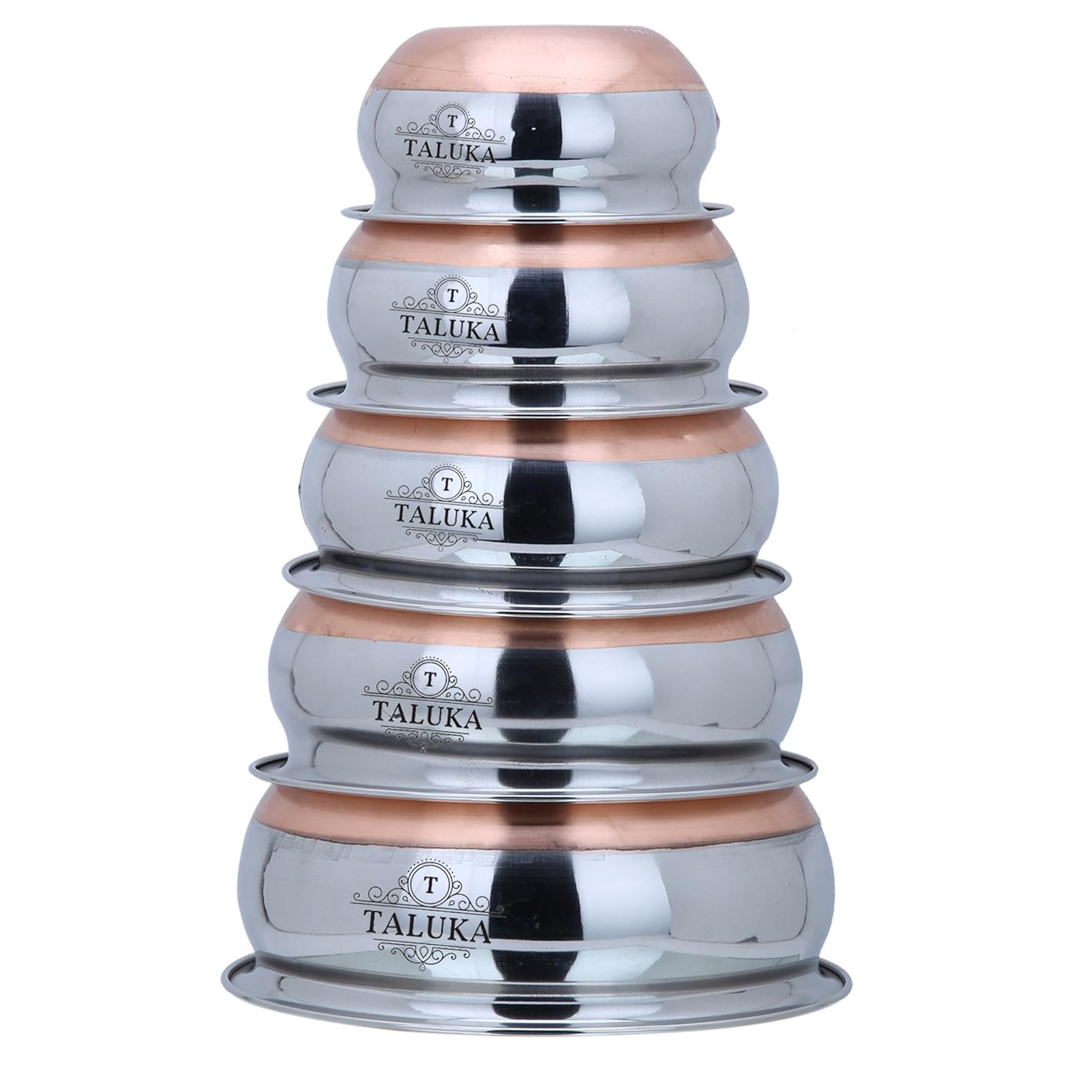7) Taluka stainless steel copper 3-piece handi pot set(multicolor, 500ml, 800ml and 1000ml)
